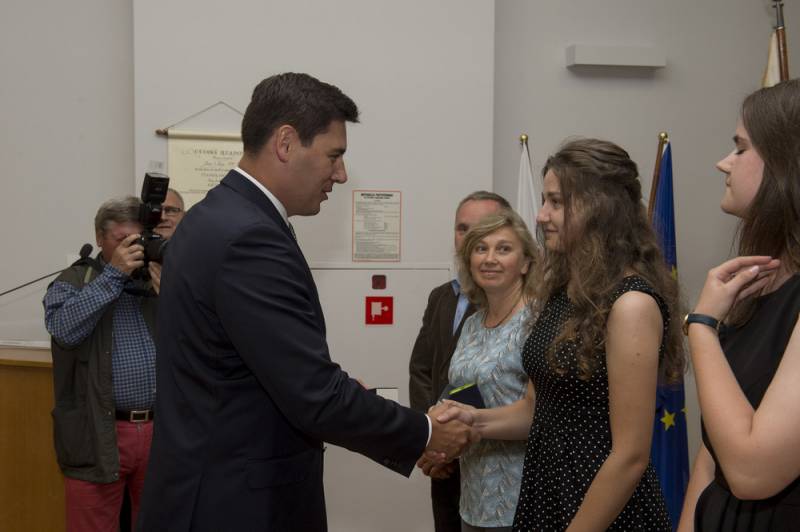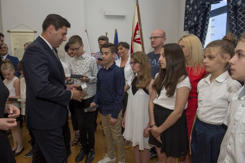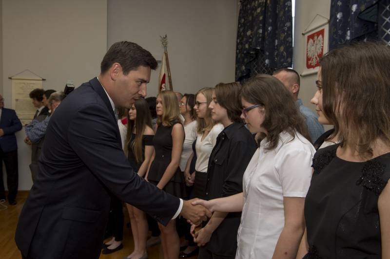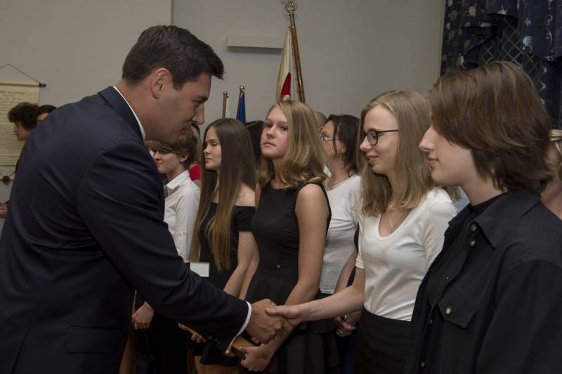 Czterdziestu czterech uczniów bialskich szkół wyróżniono za najlepsze wyniki w nauce i nagrody w ogólnopolskich olimpiadach i konkursach. Prezydent Dariusz Stefaniuk przyznał także Diamentowe Pióro Konradowi Dziarmadze z ZSZ nr 2, który wcześniej dwa lata z rzędu otrzymywał prezydenckie wyróżnienie.