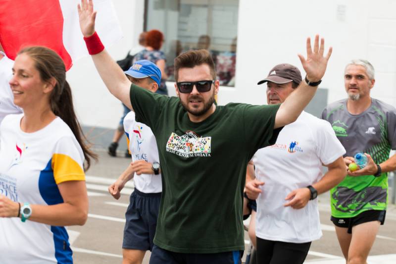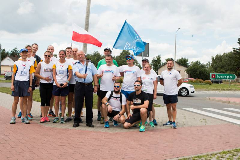 Nie obyło się bez pamiątkowych prezentów dla biegaczy, którzy udali się następnie w kierunku naszych wschodnich sąsiadów. W zamian uczestnicy Peace Run odśpiewali hymn charytatywnej sztafety.