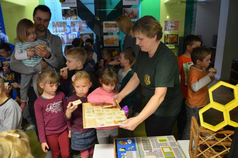 Wielkie zainteresowanie wzbudziła nie tylko ciekawa prezentacja gości Multicentrum, ale również licznie zgromadzone eksponaty takie jak: strój pszczelarza, dymka zwana podkurzaczem, ramka czy dłuto. Ten bezpośredni kontakt sprawił, że przekazana wiedza zostanie na dłużej w pamięci uczestników. Podczas spotkania odbyła się również degustacja miodów, które dzieci z wielką przyjemnością smakowały, znając jego odżywcze właściwości i walory smakowe.