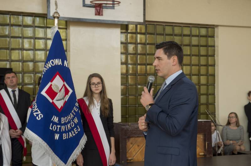 - Pamiętam jeszcze czasy, gdy przed budynkiem szkoły stał wielki samolot, którego obecnie już nie ma. Cieszę się jednak, że pielęgnujecie lotnicze tradycje, czego dowodem dzisiejsza obecność weteranów lotnictwa. Niech nowy sztandar przypomina wam zawsze o ważnych wartościach i ideałach przyświecających tej szkole – mówił podczas uroczystości prezydent Dariusz Stefaniuk.