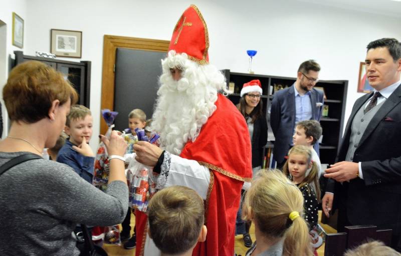 Uczniom w urzędzie miasta towarzyszył Mikołaj z prezentami. Słodkości nie zabrakło również dla pracowników magistratu. Przybysz z białą brodą pojawił się tego dnia również w autobusach miejskich i rozdawał upominki wszystkim pasażerom.