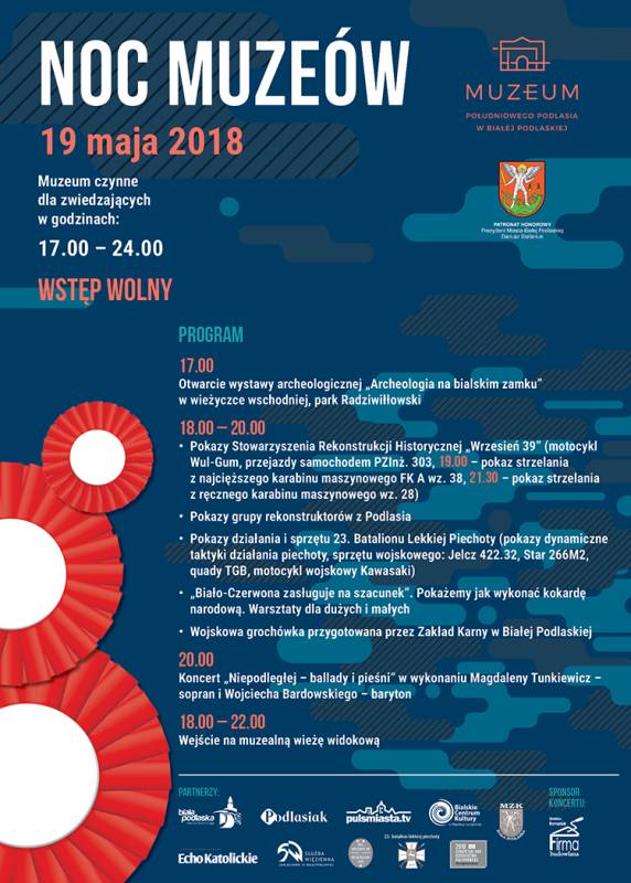 Zbliża się 10. edycja Nocy Muzeów, która w roku 100-lecia Niepodległości Polski będzie miała charakter militarny. W wydarzeniu wezmą udział grupy rekonstrukcyjne z okresu II RP. Zaprezentują umundurowanie, wyposażenie i uzbrojenie żołnierskie oraz pokazy strzelania z ciężkich karabinów wojskowych. Impreza odbędzie się 19 maja w godzinach 17.00-24.00.
