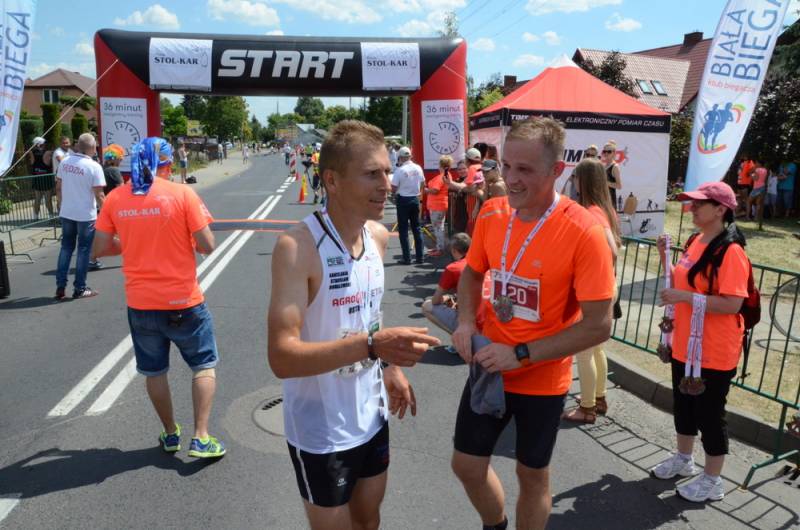 Na najdłuższym dystansie tradycyjnie bezkonkurencyjny okazał się Przemysław Dąbrowski z czasem 54,18 min. Biorcąc pod uwagę warunki pogodowe (temperatura sięgała 30 stopni) był to wynik mistrzowski. Zresztą właśnie Dąbrowski taką renomą może się szczycić, bo w ubiegłym roku w mistrzostwach Polski podczas maratonu warszawskiego był drugi.