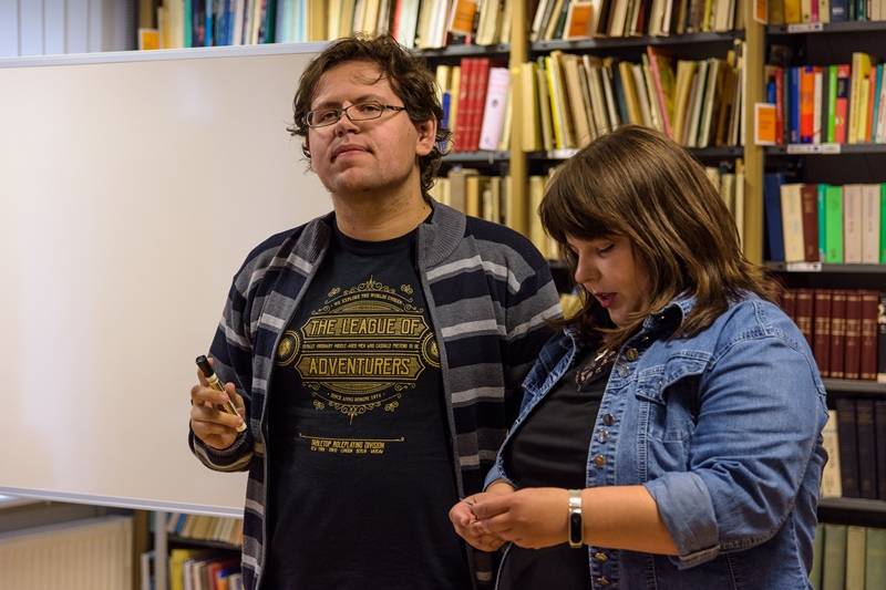Wakacje to przede wszystkim zabawa, odpoczynek, integracja z przyjaciółmi. Miejska Biblioteka zapewniła pilnym słuchaczom wykładów wesołą zabawę w kalambury, która polegała na „wyrysowaniu” wylosowanych haseł z zakresu fantastyki, na specjalnie do tego celu zakupionej tablicy. Dodatkowym, wakacyjnym akcentem dla wytrwałych odbiorców wieczornej imprezy, była aromatyczna pizza, zaserwowana w ramach poczęstunku.