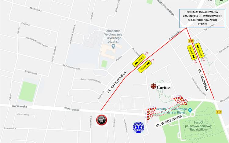 Przebudowa ulicy Warszawskiej na odcinku od Parku Radziwiłłowskiego do ul. Kopernika (bez skrzyżowania) będzie realizowana w trzech etapach. Podczas prac odcinki ulicy będą czasowo zamykane dla ruchu, na poszczególnych etapach budowy.