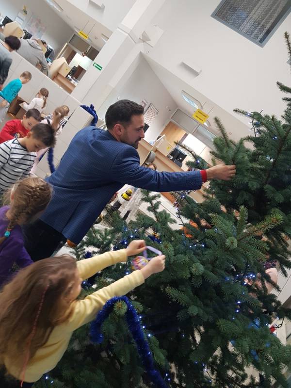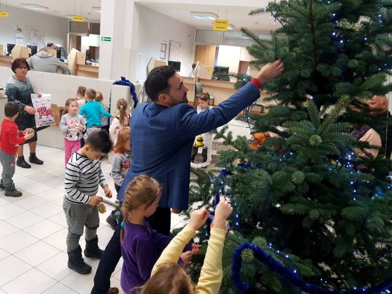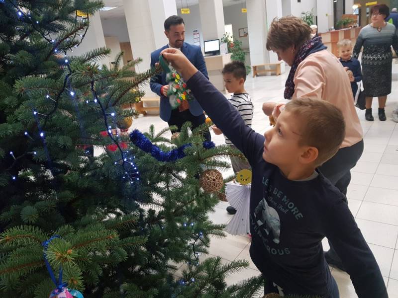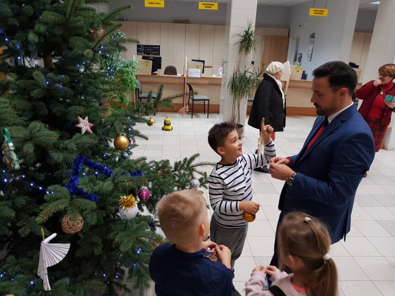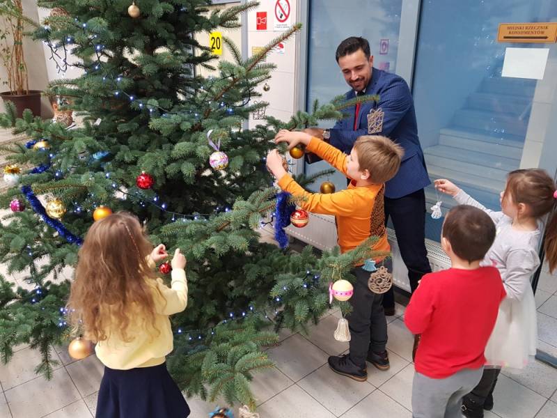 Michał Litwiniuk wraz z dziećmi z Przedszkola Samorządowego nr 13 przystroił bombkami i kolorowymi łańcuchami drzewko, które będzie towarzyszło w okresie świątecznym mieszkańcom w sali obsługi urzędu miasta. Oprócz przyozdabiania choinki prezydent najpierw wysłuchał występu przedszkolaków, a następnie sam zagrał i zaśpiewał z nimi znane kolędy.