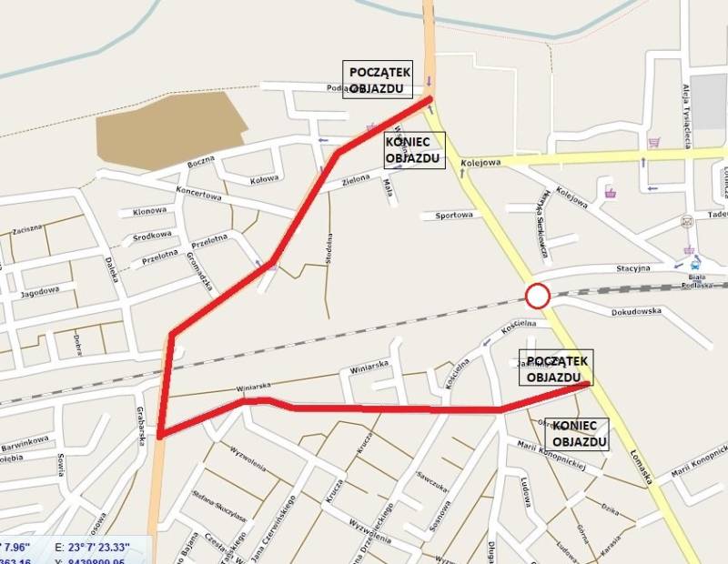 W związku z wykonywaniem robót budowlanych na linii kolejowej E20 Siedlce- Terespol dla zadania pn. „Prace na linii kolejowej E20 na odcinku Siedlce- Terespol, Etap III- LCS Terespol” zostanie zamknięty dla ruchu pojazdów samochodowych przejazd kolejowy na ul. Łomaskiej w Białej Podlaskiej w terminie 8.04.2019 -18.04.2019. Objazdy zostaną wyznaczone zgodnie z zatwierdzonym projektem czasowej organizacji ruchu.