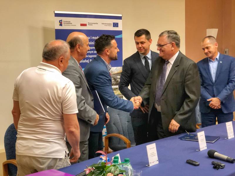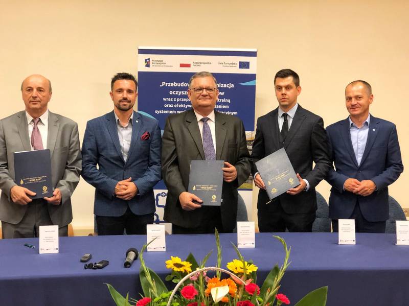 Podpisanie Kontraktu na przebudowę i modernizację gospodarki ściekowej i gospodarki osadowej na Oczyszczalni w Białej Podlaskiej w ramach projektu „Przebudowa i modernizacja Oczyszczalni ścieków wraz z przepompownią centralną oraz efektywnym zarządzaniem systemem wodociągowo-kanalizacyjnym w Białej Podlaskiej” oznacza kolejną ważną dla miasta inwestycję. W wydarzeniu wzięli udział prezydent Michał Litwiniuk, wiceprezydent Maciej Buczyński, przedstawiciele firmy Budomex Sp. z o.o. oraz spółki Bialskie Wodociągi i Kanalizacja "WOD-KAN" Sp. z o.o.