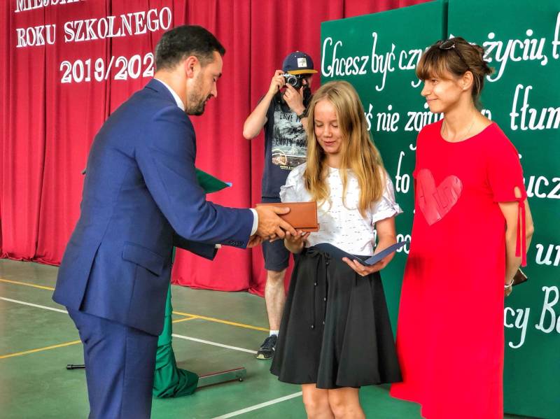 Podczas uroczystości prezydent pogratulował także wyłonionym w konkursach dyrektorom szkół: p. Aleksandrze Dopierale (ZSO nr 4), p. Marcinowi Szwedowi (ZSO nr 2) i p. Ireneuszowi Długołęckiemu (ZSZ nr 1) i podziękował wieloletniemu dyrektorowi ZSO nr 2 p. Maciejowi Kosikowi za owocną pracę. Wręczył również akty nadania stopnia awansu zawodowego nauczyciela mianowanego.