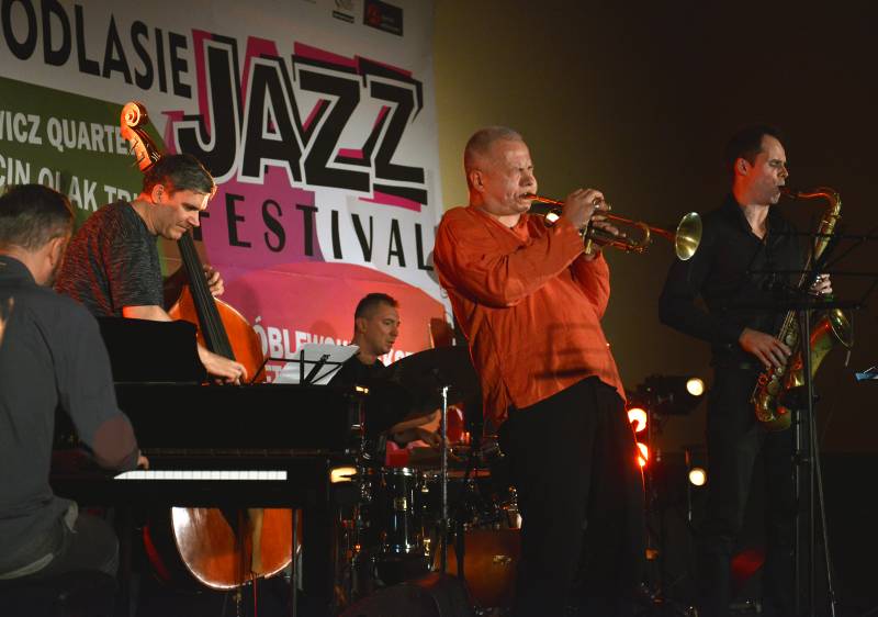 Drugim wykonawcą sobotniego wieczoru był Quintet Piotra Wojtasika (lider-trąbka, Marcin Kaletka-saksofon, Michał Tokaj-piano,Sławek Kurkiewicz-kontrabas, Michał Miśkiewicz-perkusja), oficjalnie szanowanego profesora katowickiej Akademii Muzycznej, zaś prywatnie bardzo aktywnego koncertowo mistrza trąbki. Piotr Wojtasik zasłynął kiedyś z bebopowych skłonności. Dzisiaj z pasją oddaje się jazzowi modalnemu z elementami free i etno. Na bialskiej scenie zagrał pięć intrygujących barwowo kompozycji z najnowszej płyty „To Whom It May Concern”. Cechowały je odlotowe improwizacje lidera i saksofonisty Marcina Kaletki na tle trzymającej puls sekcji rytmicznej. Choć utwory Wojtasika nie należały do łatwych w odbiorze, urzekały intensywnością i pasją instrumentalistów. Przypominały dokonania mistrzów freejazzowych popisów.