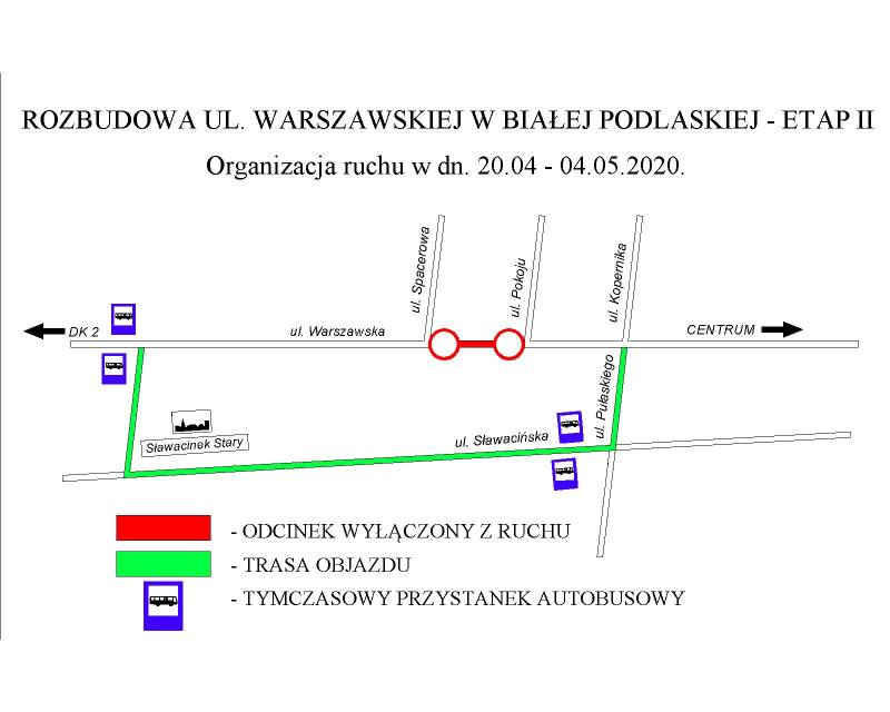 • Przystanki autobusowe z ul. Warszawskiej zostaną przeniesione na ul. Sławacińską