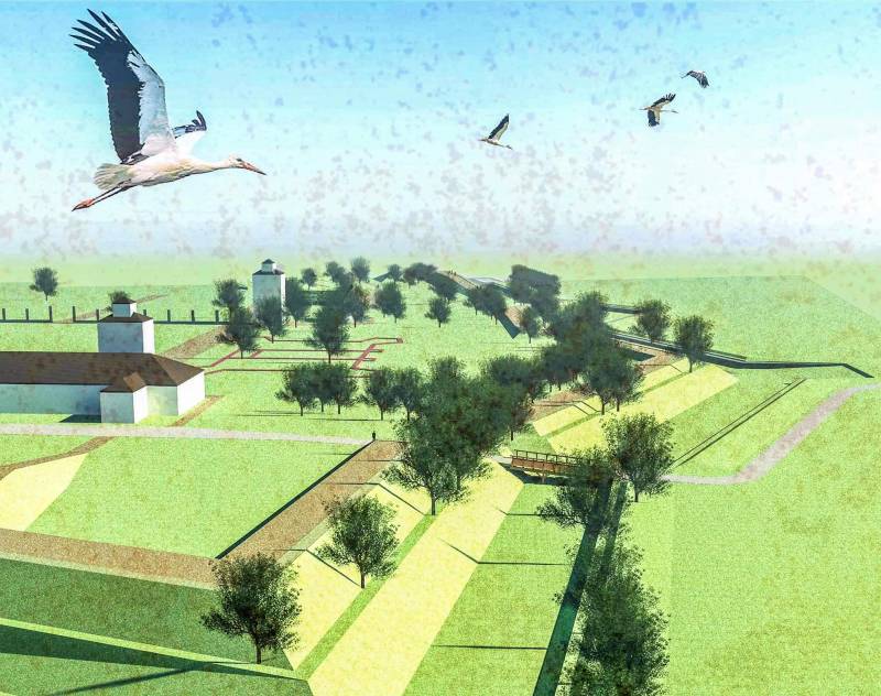 - zagospodarowanie terenu przyległego wraz z narysem pałacu, odtworzenie historycznego układu ścian zewnętrznych z basztami narożnymi,