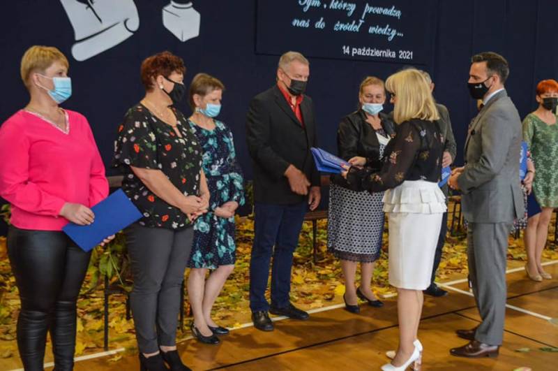W pięknej oprawie, o którą zadbała wraz z gronem pedagogicznym i uczniami pani dyrektor Bernardeta Mikołajczak, prezydent Michał Litwiniuk wręczył nagrody przyznane z okazji tego święta nauczycielom, pracownikom administracji i obsługi, oraz stypendystom - uczniom, którzy otrzymali stypendium Prezydenta Miasta Biała Podlaska za wybitne osiągnięcia w nauce.