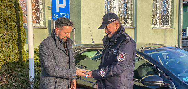 Prezydent Michał Litwiniuk przekazał komendantowi Wojciechowi Czapli kluczyki do nieoznakowanego radiowozu (silnik o pojemności 1482 cm3, moc 160 KM, napęd na przednią oś, sześciobiegowa manualna skrzynia biegów).