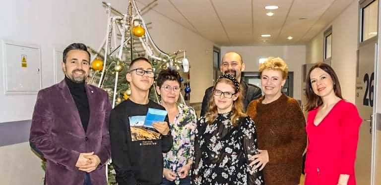 Następnie prezydent miasta Michał Litwiniuk razem z dyrektorem bilbioteki, panem dr. Pawłem Borkiem, i panią rzecznik Gabriela Kuc-Stefaniuk przekazali czytnik podopiecznym ze Stowarzyszenia Wspólny Świat.