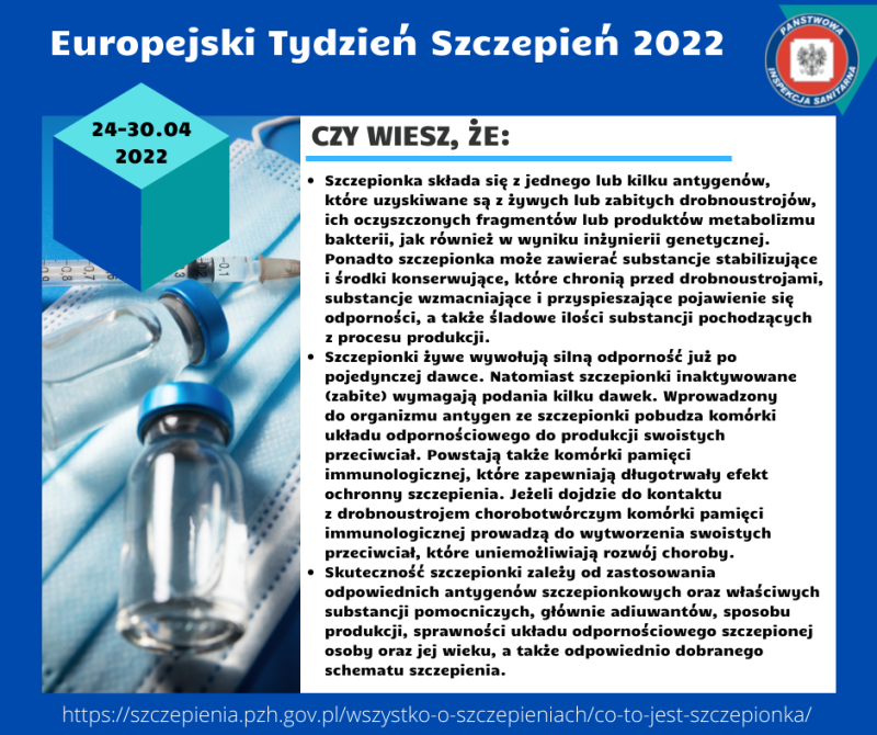 Rozpoczyna się Europejski Tydzień Szczepień, który potrwa od 24 do 30 kwietnia 2022.