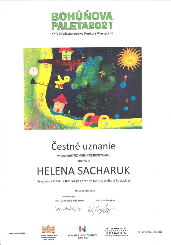 Ponad dwa tysiące prac z całego świata wpłynęło na Międzynarodowy Konkurs Plastyczny Bohúňova Paleta, który już po raz kolejny zorganizował Dom Kultury Włókniarzy w Bielsku-Białej wraz ze Szkołą Artystyczną w Dolnym Kubinie na Słowacji. Z ogromna radością informujemy że aż 5 wychowanek Pracowni Grafiki Komputerowej „Piksel", prowadzonej przez panią Lillę Wielgan-Michaluk zostało laureatkami.