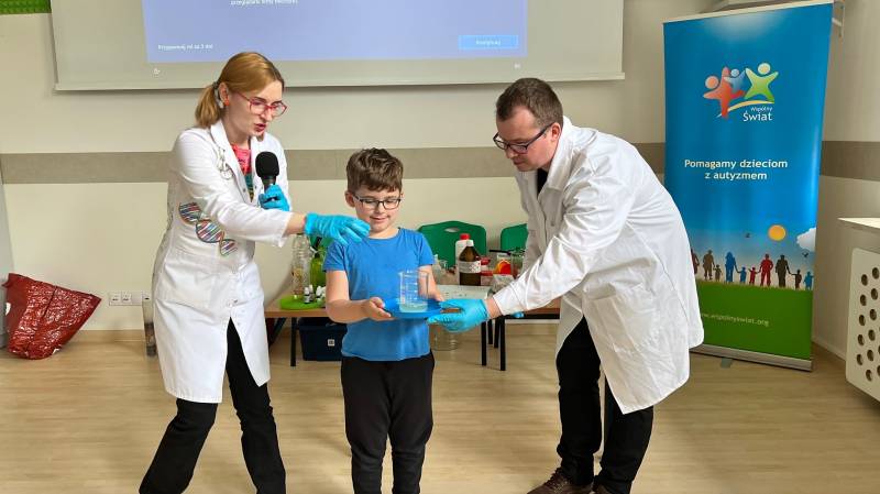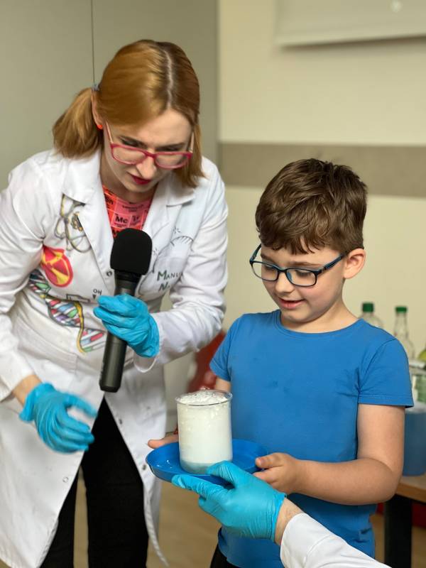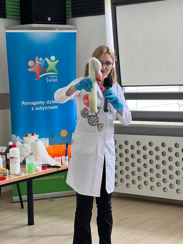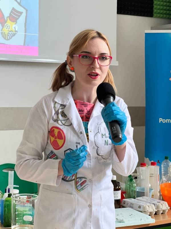 Magdalena Osial, naukowiec i pracownik Wydziału Chemii Uniwersytetu Warszawskiego, odwiedziła dzieci ze Stowarzyszenia Wspólny Świat oraz Placówki Opiekuńczo-Wychowawczej w Maniach ukazując pasjonujący i kolorowy świat książek i nauki. Swoją wizytę w mieście Pani Magda zakończyła pokazem eksperymentów w bibliotece Barwnej.