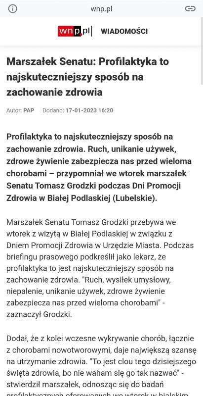 Wizyta marszałka Senatu Rzeczypospolitej Polskiej prof. Tomasza Grodzkiego w ramach Dnia Promocji Zdrowia w naszym mieście, wzbudziła zainteresowanie ogólnopolskich i regionalnych telewizji i gazet oraz największych portali internetowych.