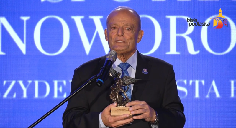 Wszyscy przyłączamy się do złożonych z tej okazji podziękowań i gratulacji pani Irenie, małżonce Riada, która tak jak i on, z otwartym sercem zawsze służy pomocą." - Michał Litwiniuk Prezydent Miasta Biała Podlaska