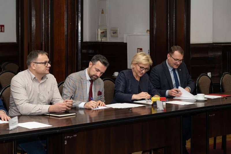 Nasze miasto podczas podpisania umowy reprezentowała także Pani Marta Mirończuk – Skarbnik Miasta oraz Marcin Kozak – kierownik Referatu Geodezji.