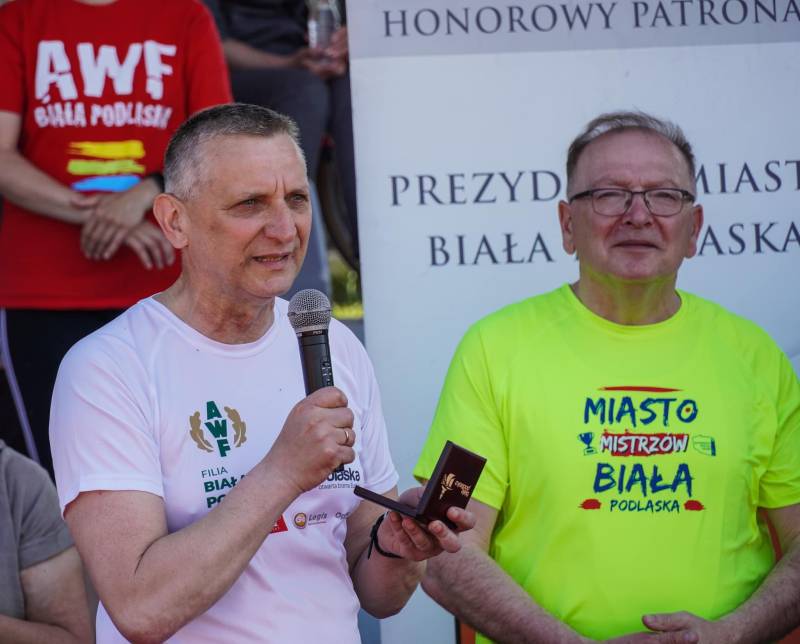 Właśnie w czasie rodzinnego święta sportu, gdy zapłonął olimpijski znicz, a nad uczestnikami dumnie powiewała olimpijska flaga prezydent Michał Litwiniuk wręczył ze tę 30-letnią piękną aktywność dr. Krzysztofowi Piechowi Medal Prezydenta przyznawany osobom o szczególnym wkładzie w integrację naszej społeczności i rozwój Białej Podlaskiej.