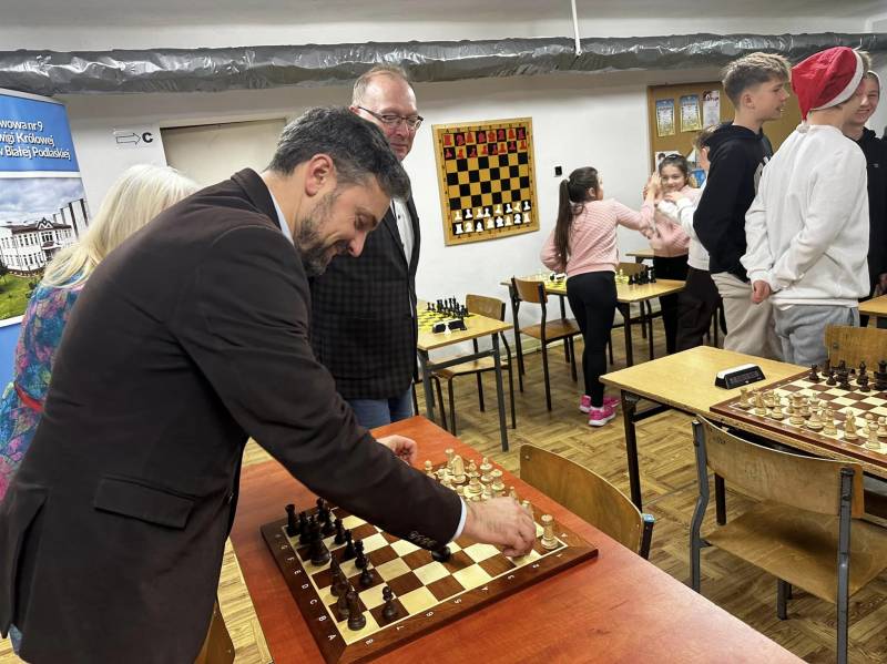 W przedświątecznym turnieju szachowym zorganizowanym pod honorowym patronatem prezydenta Michała Litwiniuka w Szkole Podstawowej nr 9 przez pana Roberta Woźniaka wzięło udział 18 miłośników tej królewskiej gry z klas IV- VIII.