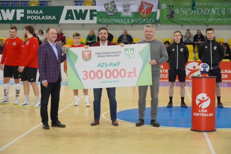 AZS AWF Biała Podlaska to duma miasta. Czek na 300 tysięcy złotych, które klub otrzymał w ramach dotacji, już przekazany.