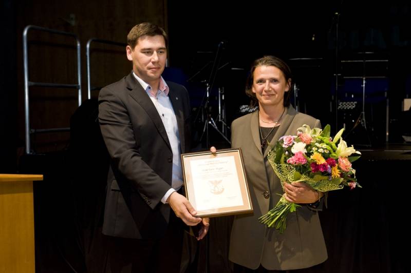 młodzieży. Laureat otrzymał z rąk prezydenta statuetkę autorstwa plastyka