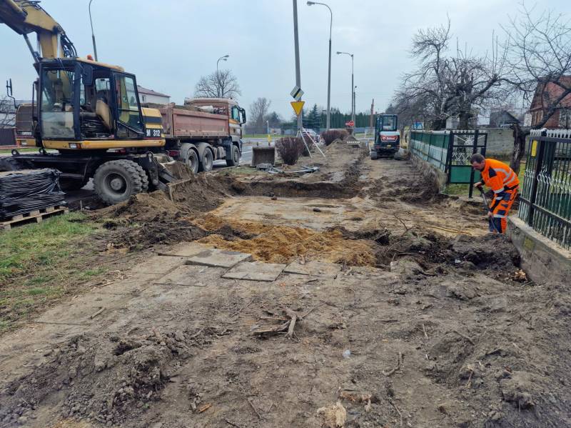 Trwają prace przy ul. Królowej Jadwigi na odcinku od ul. Sitnickiej do ul. Zygmunta Augusta polegające na przebudowie chodnika i przejść dla pieszych.