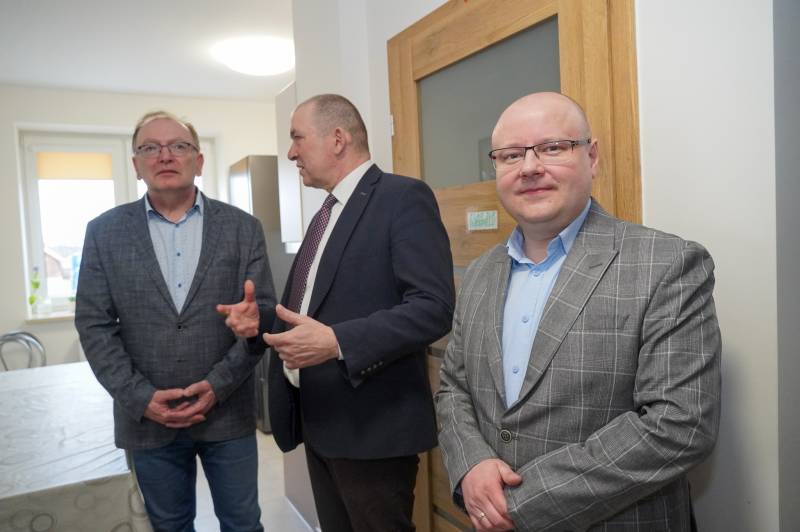 Podczas dzisiejszych odwiedzin w Rodzinnym Domu Pomocy z jego mieszkańcami spotkali się prezydent Michał Litwiniuk, zarządzający Bialską Spółdzielnią Socjalną Caritas ks. Paweł Zazuniak i pan Andrzej Chojna, naczelnik Wydziału Edukacji i Sportu dr Stanisław Romanowski, zastępca dyrektora MOPS Kamil Węgliński oraz kierownik Działu Pomocy Środowiskowej MOPS Renata Jaroszuk.