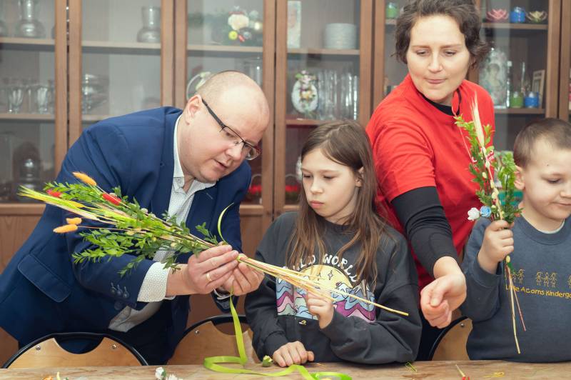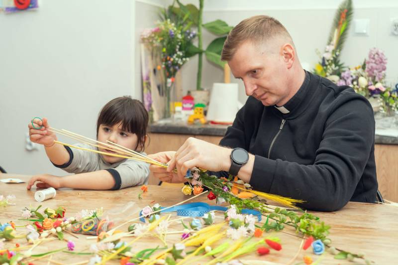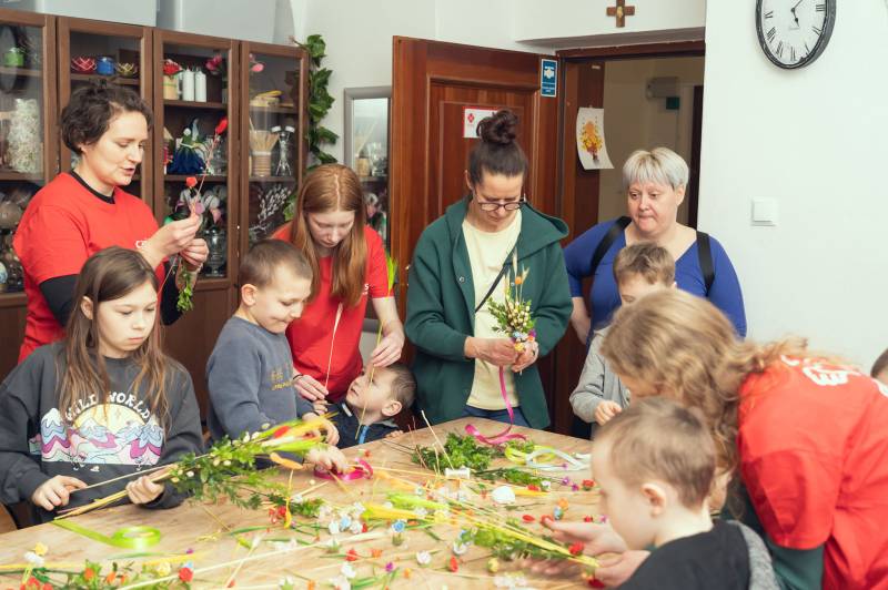 Jutro Niedziela Palmowa - zgodnie ze zwyczajem w siedzibie Caritas Biała Podlaska wśród zabaw przypominających tradycje wielkanocne było także przygotowanie palm.