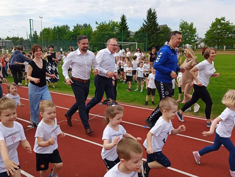 Zanim ponad setka maluchów rozpoczęła maraton, zgromadzonych gości przywitali prezydent Michał Litwiniuk i dyrektor Szkoły Podstawowej nr 9 Bernadeta Mikołajczak.