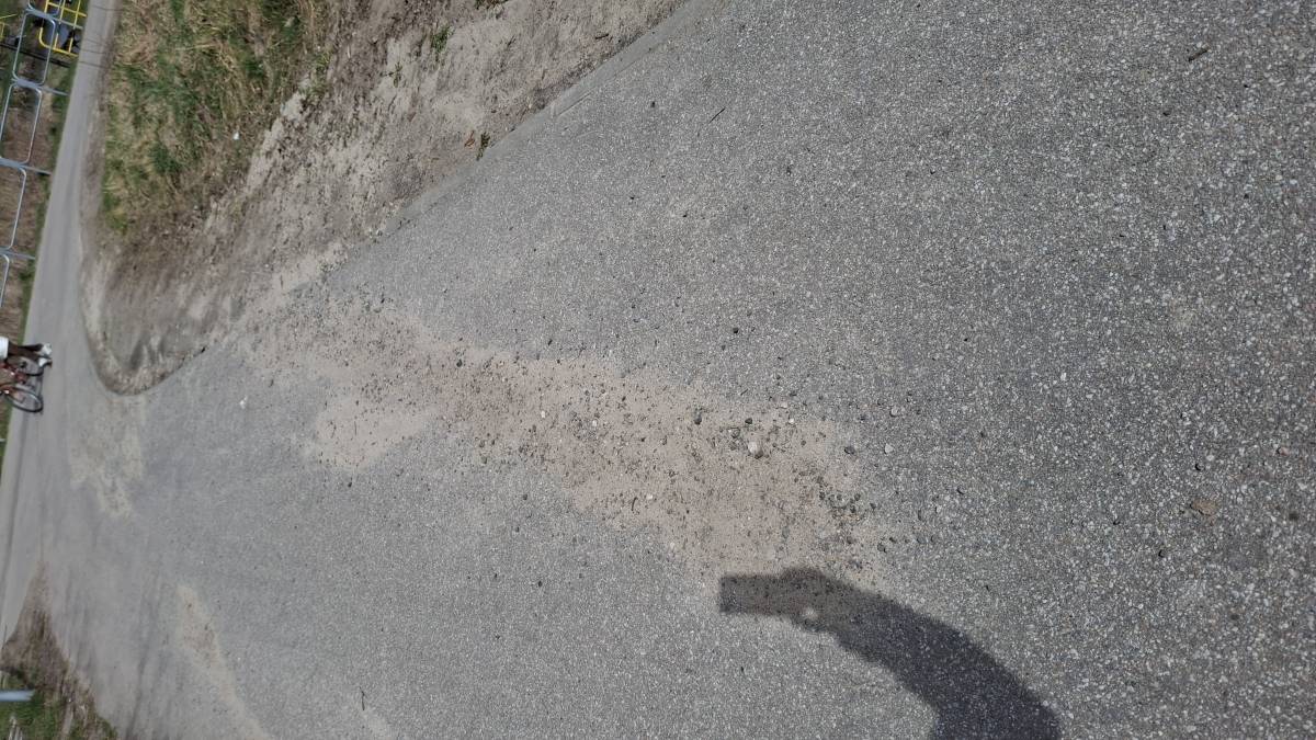 Cała ścieżka zanieczyszczona jeszcze po pracach budowlanych bardzo niebezpieczne szczególnie dla rowerzystów i dzieci