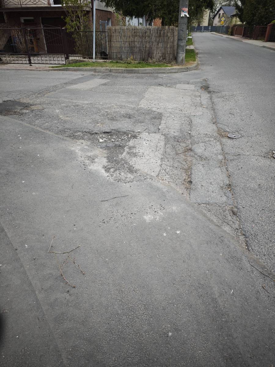 Uszkodzenie jezdni na skrzyżowaniu ulicy Jerzego Bajana i Czesława Witoszyńskiego
