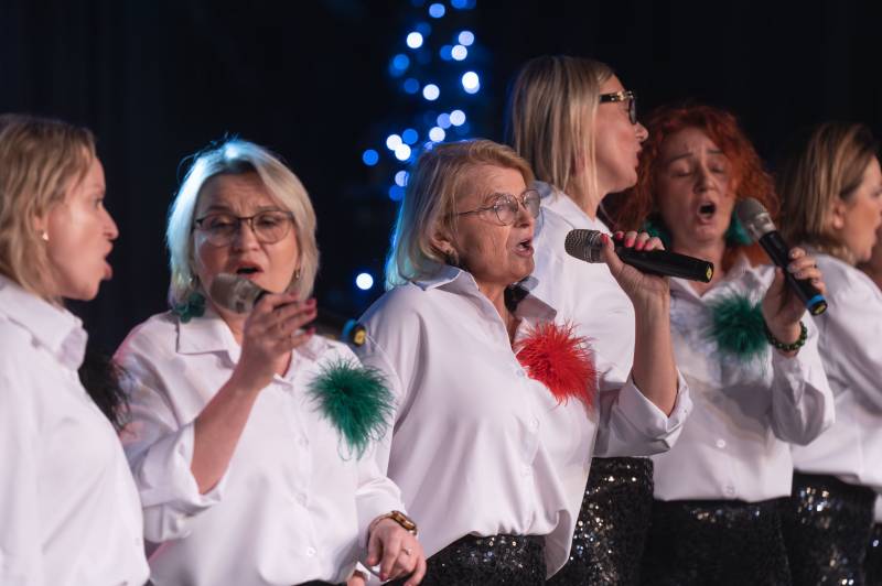 Publiczność zgromadzona w Białej Podlaskiej miała okazję wyruszyć w niezwykłą muzyczną podróż. Artyści z Zespołu Wokalnego „Chwilka” zaprezentowali najpiękniejsze tradycyjne kolędy oraz świąteczne przeboje, tworząc wspaniałą, rodzinną atmosferę.
