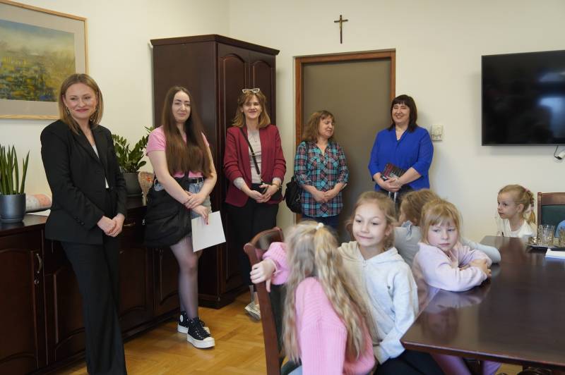 Uczniowie klasy pierwszej Szkoła Podstawowa nr 4 im. Kornela Makuszyńskiego w Białej Podlaskiej odwiedzili dziś Urząd Miasta. Dzieci wraz z wychowawcą Renatą Dawidiuk spotkały się z wiceprezydent Justyną Gorczycą, która przywitała ich w imieniu prezydenta Michał Litwiniuk i opowiedziała o codziennej pracy magistratu.