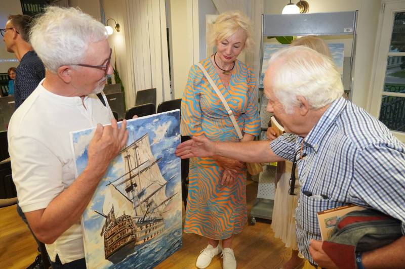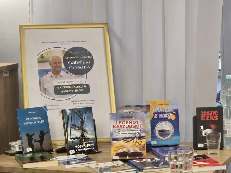 Prowadząca spotkanie Edyta Tyszkiewicz zapytała również o inne pasje Gabriela Oleszka, jest on bowiem autorem ponad 40 książek o tematyce marynistycznej i sensacyjnej, a także namalował kilkaset obrazów.