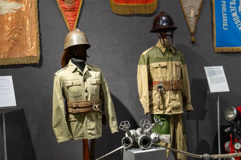 Eksponaty pochodzą ze zbiorów Muzeum Południowego Podlasia, Komendy Miejskiej Państwowej Straży Pożarnej w Białej Podlaskiej, Izby Tradycji Pożarniczej Komendy Powiatowej Państwowej Straży Pożarnej w Radzyniu Podlaskim oraz Jednostki Ratowniczo-Gaśniczej w Międzyrzecu Podlaskim.