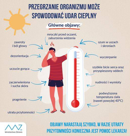 Przegrzanie organizmu może spowodować udar cieplny.