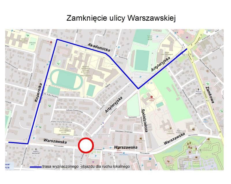 Objazd dla ruchu miejskiego będzie poprowadzony ulicami Kopernika, Akademicką, Artyleryjską, Zamkową.