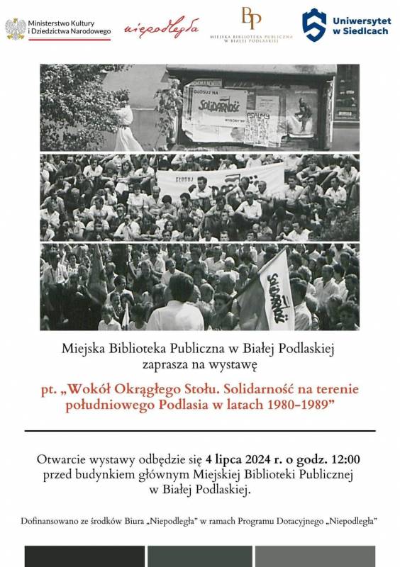 4 lipca o godzinie 12:00 przed budynkiem głównym Miejskiej Biblioteki Publicznej (ul. Warszawska 12a) odbędzie się otwarcie wystawy pt. "Wokół Okrągłego Stołu. Solidarność na terenie południowego Podlasia w latach 1980-1989".