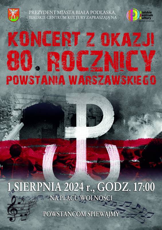 Odbędzie się również koncert "Powstańcom śpiewajmy", podczas którego wraz z harcerzami, młodzieżą Bialskiego Centrum Kultury oraz zaproszonymi gośćmi, będzie można uczcić wydarzenie poprzez wspólny śpiew piosenek powstańczych.