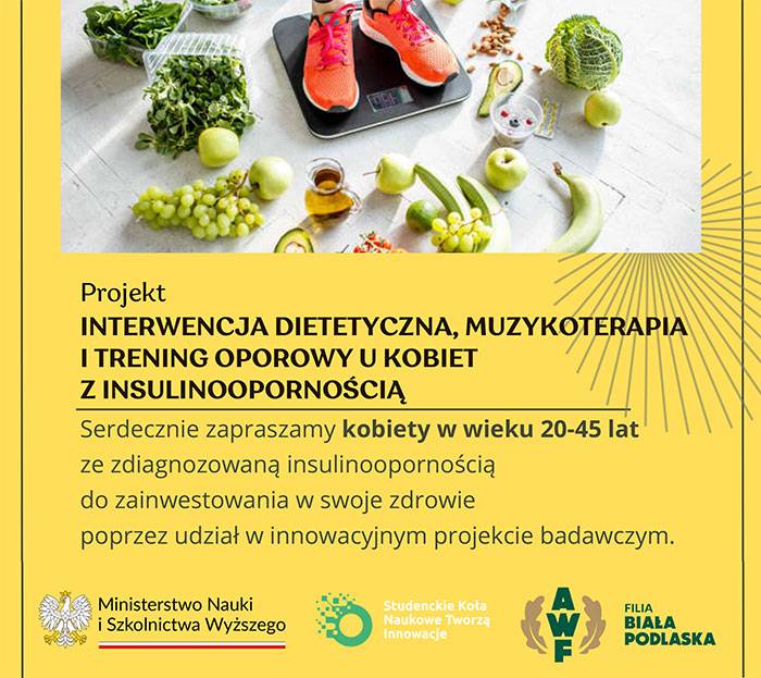 AWF Biała Podlaska zaprasza kobiety w wieku 20-45 lat ze zdiagnozowaną insulinoopornością do udziału w innowacyjnym projekcie badawczym.