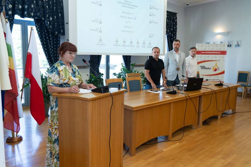 Podczas dzisiejszej, nadzwyczajnej sesji Rady Miasta ślubowanie złożyła radna Krystyna Nowicka. Zajęła miejsce po zmarłym 21 lipca 2024 r. Waldemarze Godlewskim.