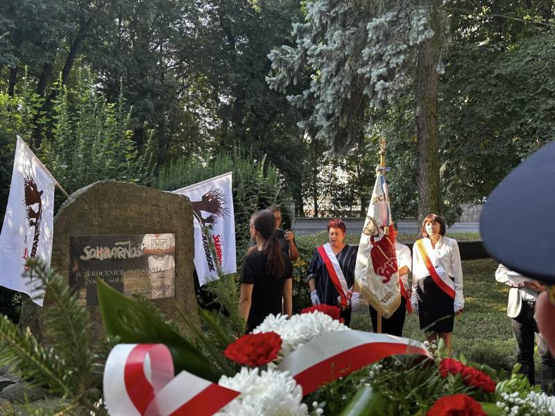 Podczas uroczystości zorganizowanej przez Bialskopodlaski Oddział Regionu Mazowsze NSZZ „Solidarność” z przewodniczącym Markiem Pniewskim na czele uczciliśmy dziś 44. rocznicę podpisania Porozumień Sierpniowych i utworzenia NSZZ „Solidarność”. Jak co roku przy pomniku Solidarności obecne były postacie najważniejsze dla naszej lokalnej historii tamtych lat: Elżbieta Chaberska, Andrzej Czapski, Marian Kwiatkowski.