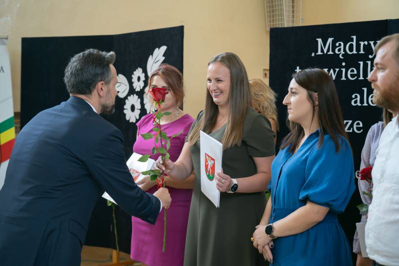 Podczas miejskiej inauguracji, która odbyła się w Szkole Podstawowej nr 4 im. Kornela Makuszyńskiego, prezydent miasta Michał Litwiniuk wręczył nominacje dyrektorom szkół, którzy w czerwcu wygrali konkursy, oraz awanse zawodowe nauczycielom mianowanym.