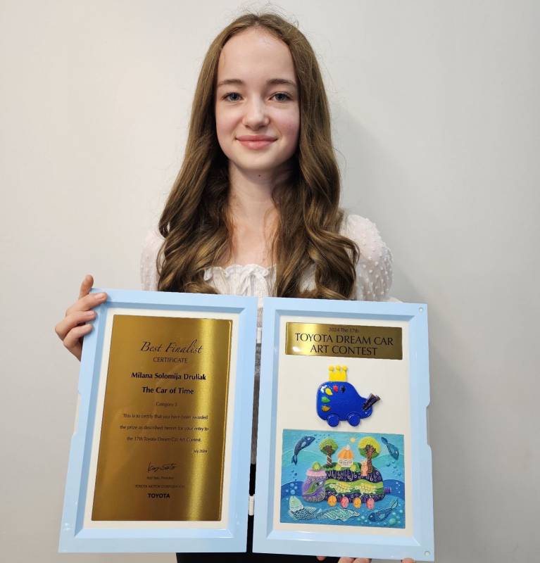 W Japonii odbył się drugi etap światowej klasy konkursu "Dream Car 2024/17 Toyota Dream Car Art Contest ". Do Japonii 90 krajów wysłało 713 000 prac „Maszyn Marzeń". Praca Milanki znalazła się wśród 7 najlepszych finalistów Świata w swojej kategorii stulecia.