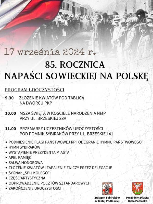 Związek Sybiraków i prezydent Michał Litwiniuk zapraszają na uroczystości upamiętniające sowiecką napaść na Polskę.