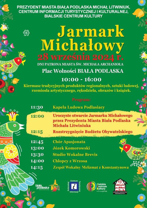 Tradycyjnie w ramach Dni Patrona Miasta Św. Michała Archanioła, zapraszamy do udziału w Jarmarku Michałowym na placu Wolności.
